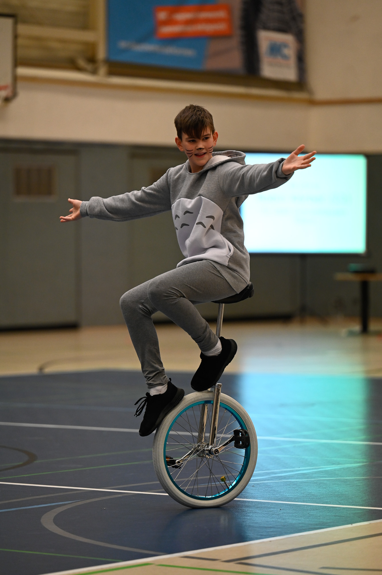 In unserer Abteilung bieten wir schwerpunktmäßig Einrad-Freestyle an, erweitern das Angebot aber am Rande durch die bunte Vielfalt der Zirkuskünste.
