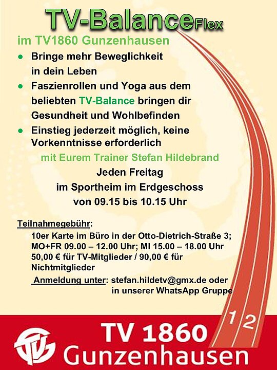 TV Balance Flex: immer Freitags von 09:15 Uhr bis 10:15 Uhr im TV Sportheim (Erdgeschoss)