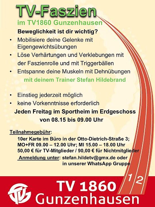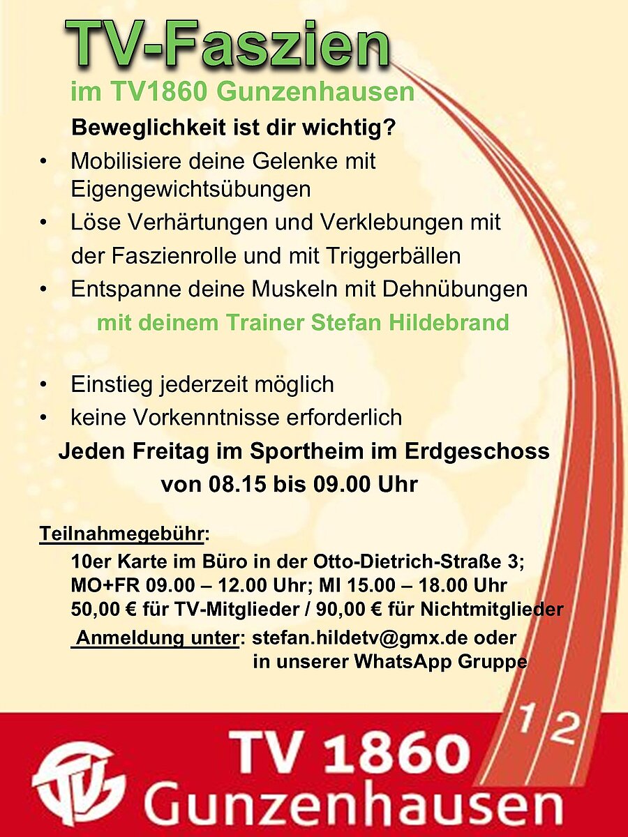TV Faszien: immer Freitags von 08:15 Uhr bis 09.00 Uhr im TV Sportheim (Erdgeschoss)