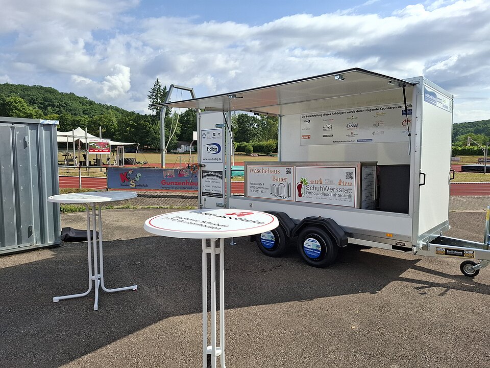 Bestehend aus einem Festzelt, sechs Bierzeltgarnituren, sechs Stehtischen, einem Gasgrill (für die Gasflasche ist selber zu sorgen) sowie einem in den Hänger eingebauten Kühlschrank, können Feierlichkeiten nun fast unabhängig vom Wetter geplant werden.