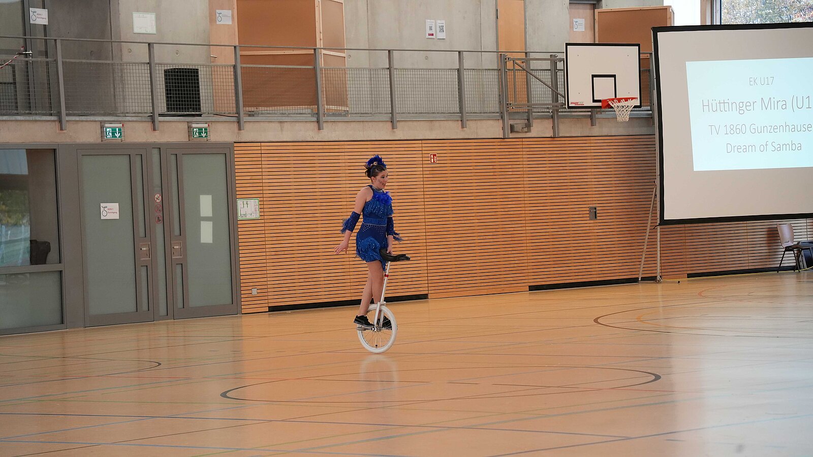 Für eine Süddeutsche Meisterschaft mit 15 Küren ungewöhnlich viel, aber gewohnheitsgemäß starke Konkurrenz hatte dagegen Mira Hüttinger mit ihrer Einzelkür am Samstagvormittag, die neben einigen weiteren Fahrerinnen über den Sommer hinweg ihre Altersklasse wechselte und somit von einer Junior Expert- zu einer Expert-Starterin wurde. Damit einherging, dass sie die Kür im Vergleich zur Bayerischen Meisterschaft zeitlich verlängern und entsprechend ausbauen musste. Mit „Dream of Samba“ tanzte sie sich mit ihrer auf hohem Trickniveau angesiedelten Kür schwungvoll und leidenschaftlich auf einen guten 10ten Platz in ihrer Altersklasse U17.
